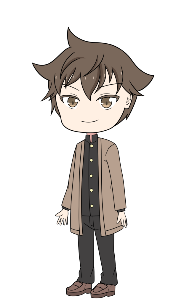 14歳。身長165cm。ルミ子と幼馴染。勉強とスポーツ両方が得意だが、英語だけは全くできない。英語界で基礎を学びなおしたことにより、文法が分かるようになってきた。基本は落ち着いているが厨二病で時々かっこつけてしまうことがある。